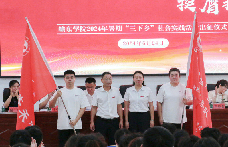 校领导为“三下乡”实践队伍授旗,鼓励赣东学子们深入社会、深入群众、接受考验、增长才干,在农村基层展现风采、贡献智慧、奉献力量。