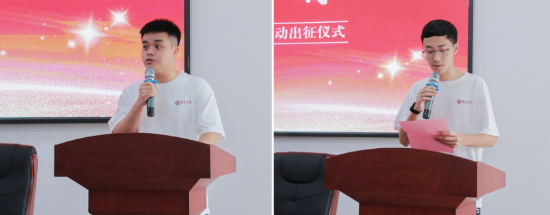 出征仪式在全体成员共同奏唱中华人民共和国国歌和中国共产主义青年团团歌后正式启动。
