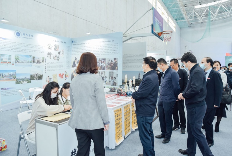 展示交流会上,我校结合自身特色,充分挖掘传统工艺、民间技艺、非遗传承等主题元素,大力弘扬中华优秀传统文化和工匠精神,展出的书法、剪纸、手工蜡染、古风团扇等项目备受青睐,吸引了众多高校前来参观。省委教育工委副书记、省教育厅厅长郭杰忠,省委教育工委委员、省教育厅副厅长刘小强等省厅领导到我校展位视察观展,并与布展师生亲切交流。