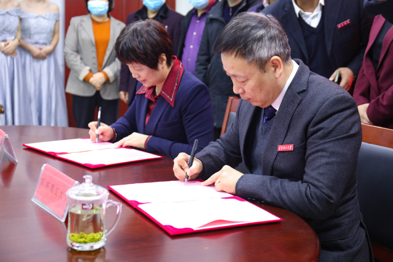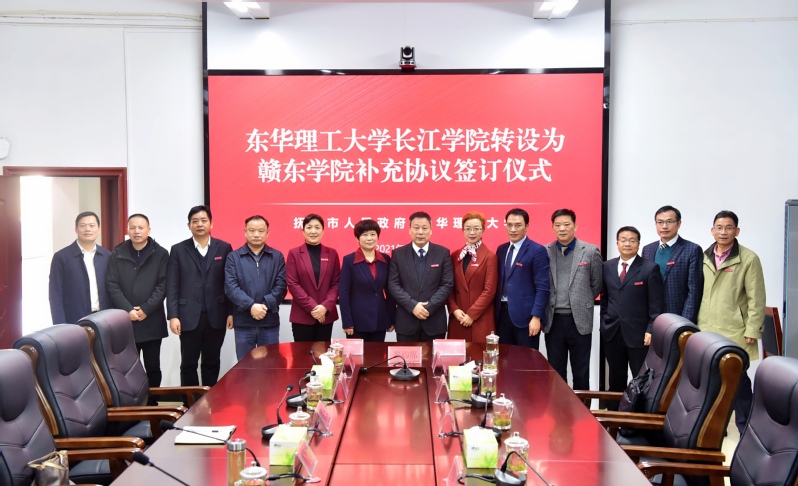 仪式上,蔡青代表市政府、刘紫春代表东华理工大学签署了东华理工大学长江学院转设为赣东学院的补充协议。(文/图 陈成 刘杨桢 )