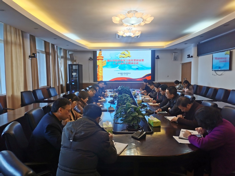 11月30日下午4时,市人大副主任、赣东学院党委副书记陈克胜主持召开会议,传达学习宣传贯彻省第十五次党代会精神。院领导邹自力、刘晓荣、龚升平、陈凌、周红娟、邱剑文出席会议,各系部书记、主任参加会议。