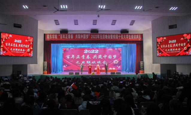 为丰富学生校园文化生活,搭建师生互动交流平台,12月27日晚7时,我院于大礼堂举办了2022年元旦晚会暨校园十佳大学生颁奖典礼。晚会以“百年正青春,共筑中国梦”为主题,学院党委副书记陈克胜、常务副院长邹自力,院领导刘晓荣、龚升平、陈凌、陈坚、辛育东、周红娟、邱剑文,各系部教师代表、学生代表欢聚一堂,在欢歌笑语中共同迎接新年的到来。