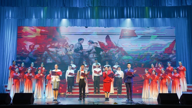 晚会最后,伴随着师生共同齐唱《我和我的祖国》,齐贺百年礼赞,共唱时代新声,活动在全场观众的欢歌中落下帷幕。