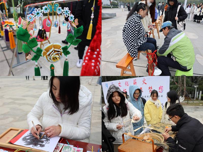 活动主要通过“非遗集市”的形式让学生了解抚州非遗历史,零距离接触非物质文化遗产,体验优秀传统文化,在活动现场,多个不同种类的非遗代表项目一字排开,同学们兴趣盎然地边制作边感受传统非遗技艺的风采和韵味。
