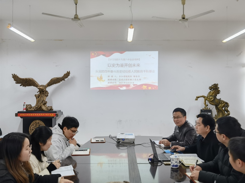 近日,应用工程系教工党支部在科技楼615举办深入学习贯彻党的十九届六中全会精神宣讲报告会,学院常务副院长邹自力应邀作了题为《从党的百年奋斗历史看人民教育千秋基业》的专题宣讲。教工党支部全体党员参加了此次宣讲会。