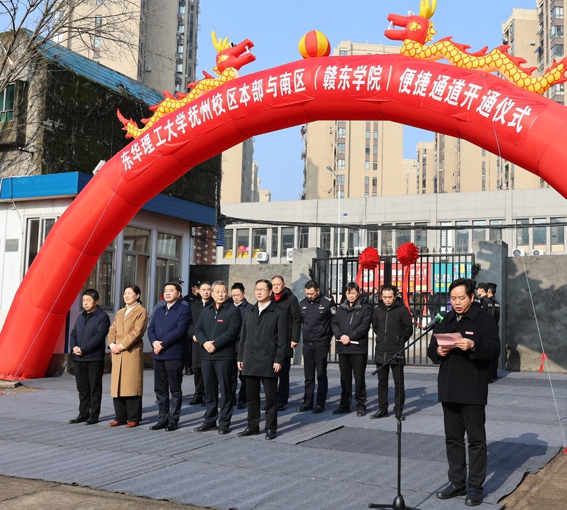 2月24日上午9时,东华理工大学抚州校区本部与南区(赣东学院)便捷通道开通仪式举行。市委副书记李高兴,东华理工大学党委副书记刘紫春,市人大常委会副主任、赣东学院党委副书记陈克胜,市政府副市长薛强,赣东学院常务副院长邹自力及市直单位、高新区、临川区相关领导出席仪式,院领导刘晓荣、龚升平、陈坚、邱剑文参加仪式。东华理工大学抚州校区管委会常务副主任茶金学主持仪式。