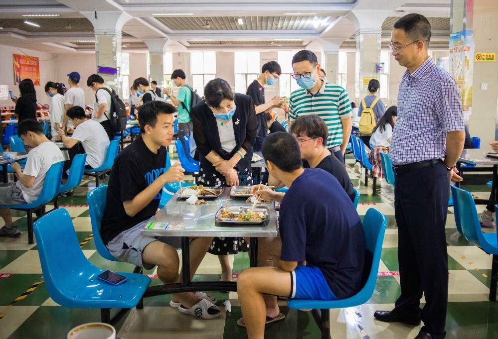在学生食堂,院领导一行了解了食堂的菜品价格、饭菜质量和环境卫生等情况,并与就餐的同学亲切交谈。