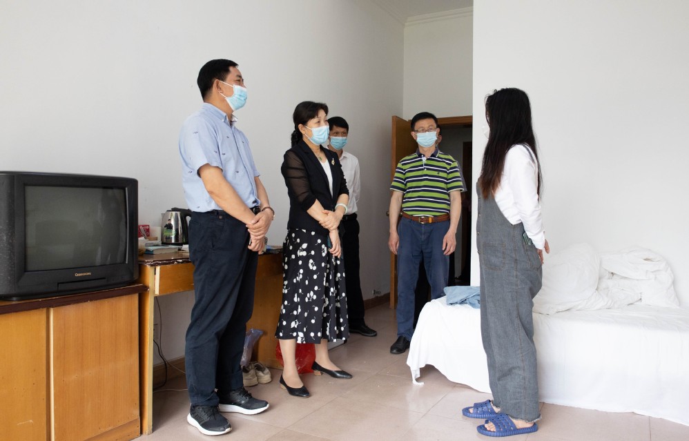 院领导一行先后来到学院隔离场所、学生食堂、校园周边等地进行了走访检查。在实地了解了隔离留观点的建设环境后,院领导一行同留观学生开展了交流沟通,了解他们的身心健康、学习生活等情况,安抚学生的同时,并就学生的“急盼愁难”予以解答和部署。邹自力表示:各级领导干部、教师要扛起责任,坚守岗位,落实做细各项工作,服务好在校师生;同学们要积极与老师沟通,理性表达合理诉求,珍惜这不寻常的时光,保持乐观向上的心态,在奋斗中追逐青春理想。