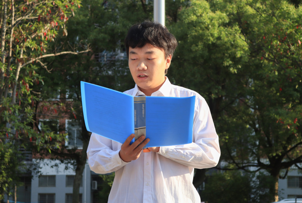 学生代表李豪洋在发言激励青年学子们:身为团员,作为当代青年中的一份子,我们理应是初升的太阳,用我们的信仰和生命去创造一个万国来朝的华夏盛世!