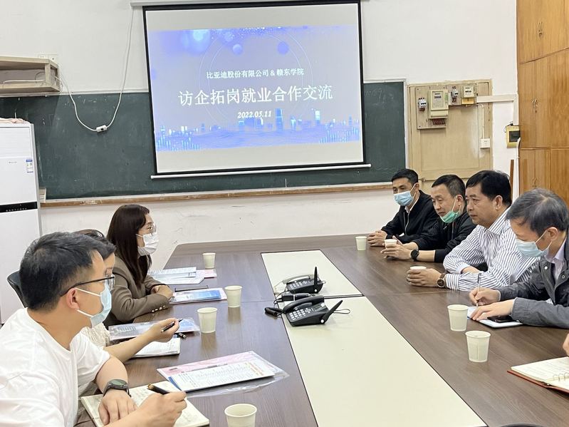 张妍一行先对比亚迪公司在抚州投资建设新能源汽车生产基地情况作了简要介绍,表达了公司对与赣东学院开展人才培养、就业合作的信心。同时针对毕业生就业选择、薪酬待遇、入厂参观、实训实习等问题,与机电系书记、主任进行详细了解和交流。