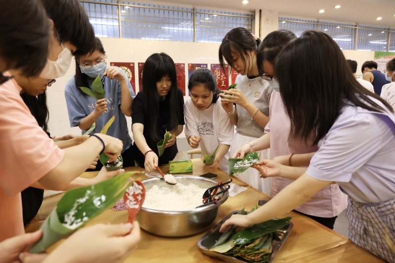 借此端午佳节,同学们也都畅所欲言,交谈氛围轻松愉快。“包粽子也是门技术活,掌握不好很容易漏米。”“人生中第一次包粽子,品尝自己的劳动果实,这个端午特别甜。”“吃粽子是端午节的传统习俗,送粽子活动让我们感受到浓郁的节日气息以及深切的关怀,粽香陪伴,这个端午节我们不孤单。”