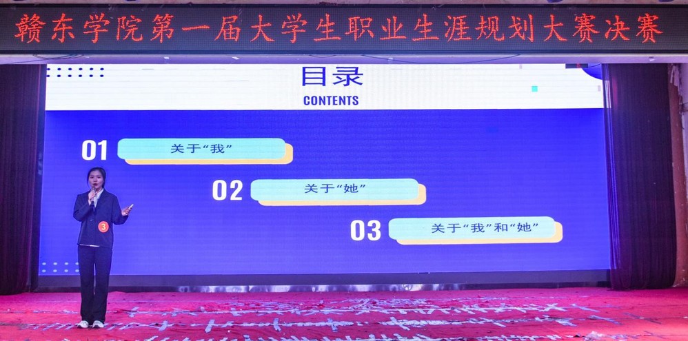 比赛中,有选手着眼于所学专业,将记者、编剧、测量员、软件开发、财务等岗位设为目标职业,展现了赣东学子的职业精神;有选手钟情于教育行业,将英语教师、化学教师岗位设为目标职业,体现了同学们的人文情怀。