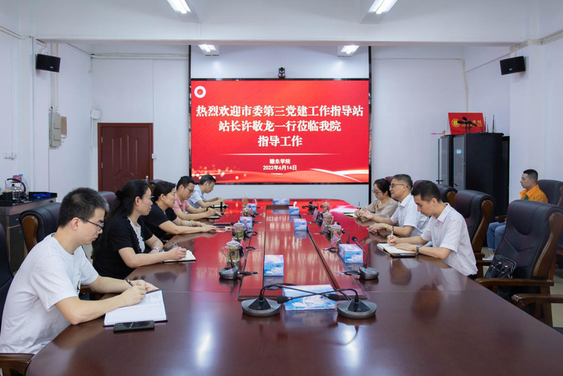6月14日,抚州市委第三党建工作指导站站长、市政务服务局二级巡视员许敬龙一行深入赣东学院,指导学院基层党建工作和考察“模范党支部”创评工作。学院党委副书记陈克胜出席会议并讲话,院领导刘晓荣、周红娟、邱剑文参加。