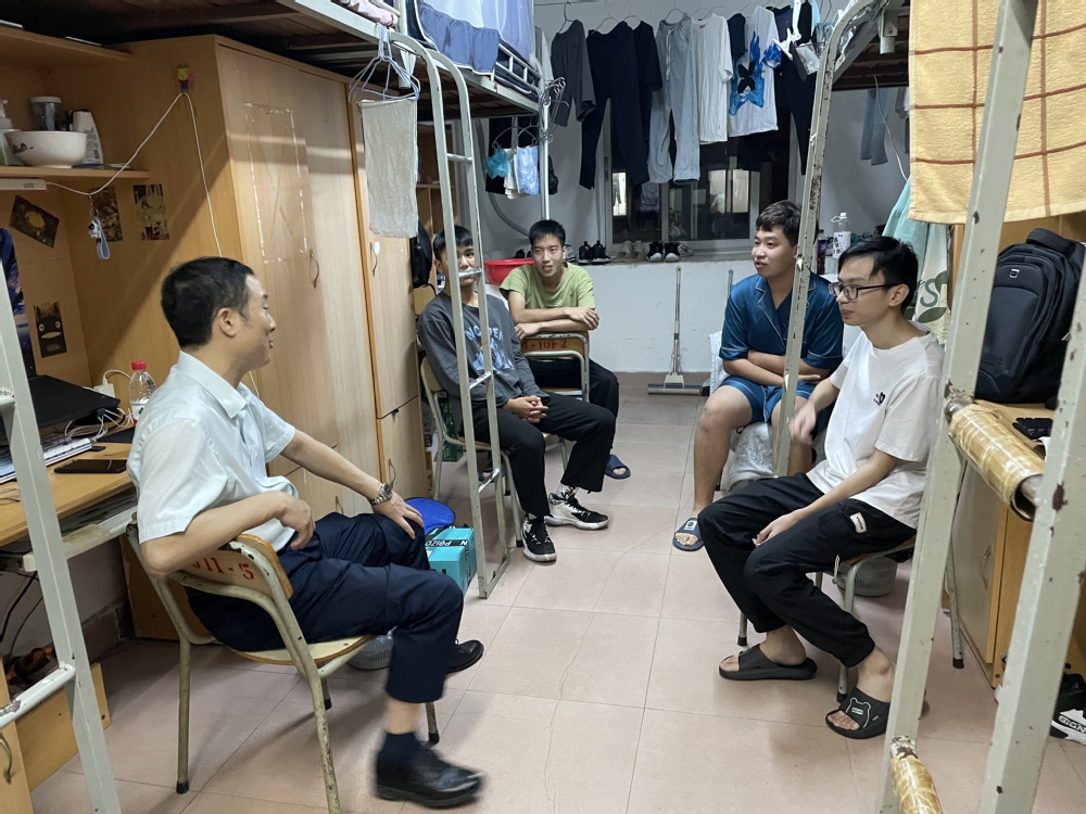 家访结束后,陈坚一行走访了南区1栋的部分男寝,与学生们进行了亲切交谈。座谈期间,同学们把自己一年来的学习和生活中的点点体会和收获逐一做了汇报。陈坚在认真聆听学生心声后,嘱托大家要找准自我提升方向、缓解焦虑情绪,鼓励大家放心在校、努力学习,多跟学院老师沟通交流,以乐观的态度和饱满的精神状态投入到今后的学习和生活中。