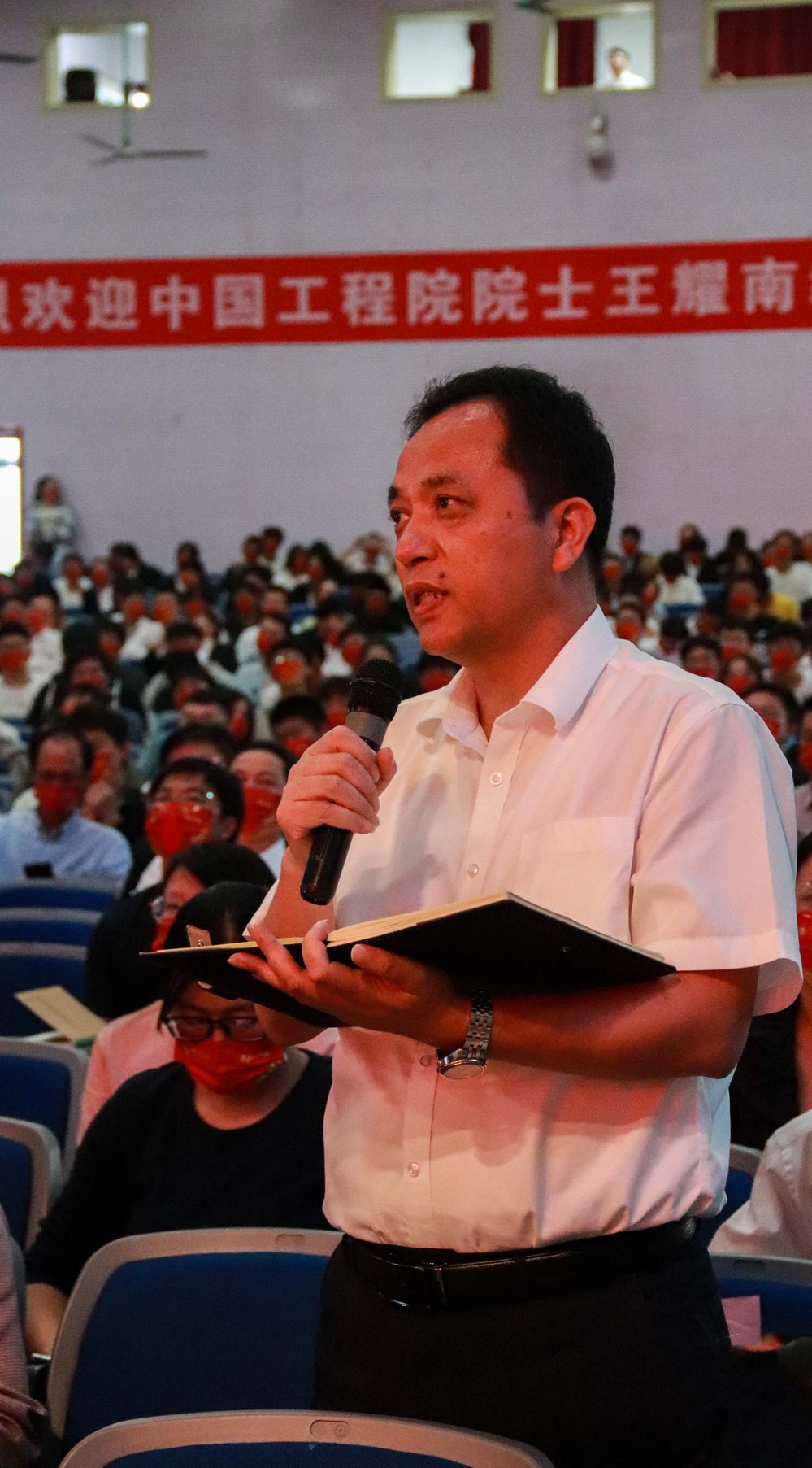 在互动交流环节,现场听众纷纷举手提问,信息工程系通信工程专业教师周伟辉、软件工程专业教师胡敏、软件工程专业学生金淇从学科教学、学习规划、突破抚州中小微企业智能化瓶颈等多个方面向王院士进行请教,王院士一一作出了详细的解答,现场气氛十分热烈。