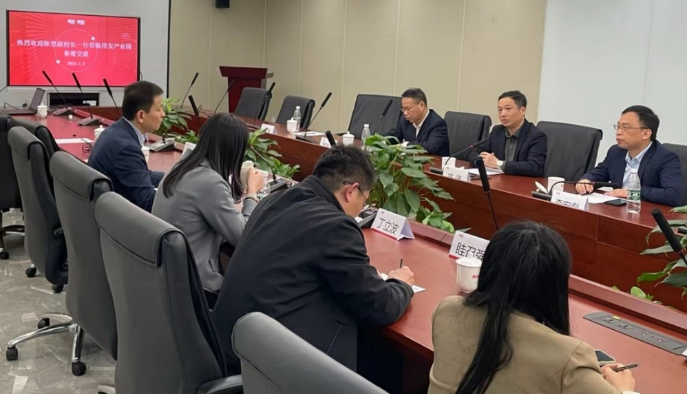 为进一步深化产教融合,推进我校应用型人才培养模式改革,促进毕业生高质量就业,4月3日,校领导陈坚带队赴北京用友产业园考察调研,经济与管理系、信息工程系负责人陪同考察。用友集团新道科技股份有限公司副总裁田鹏、新道科技方案部副总经理眭召强、新道科技江西区总经理丁立波等热情接待了陈坚一行。