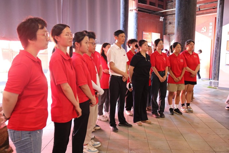 谢国辉与参加暑期社会实践的师生亲切交谈,并带领师生参观了中央红军第四次反“围剿”东陂战役陈列馆——红一方面军总部会议旧址。参观过程中,谢国辉现场讲解了“独臂将军”彭绍辉、“一块银元”等红色故事。