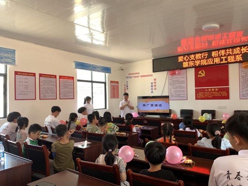 普通话推广志愿活动通过组建实践队的方式展开,活动形式丰富多样。其中,校团委实践分队通过走访调研、组织填写调查问卷等形式了解村民普通话的使用情况、学习需求,以浅显易懂的语言向村民们讲解如何说好普通话;经管实践队以分发宣传单的形式展开活动,通过图文材料向村民普及普通话的重要性与发展历程;应用工程系实践队员们以寓教于乐的方式对当地儿童开展“推普”课堂活动,以绕口令比赛、古诗朗诵、唱响国歌等方式,激发孩子们对说好普通话的兴趣;机电系实践队对当地村民“说话带乡音”的具体情况进行了针对性的分析;信息工程系实践分队从发音技巧和练习方法等方面向村民讲解如何说好普通话;人文与艺术系实践队通过诵读红色故事、教授三笔字,让孩子们在轻松愉快的氛围中学好普通话。