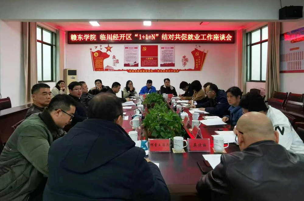 1月8日,校党委委员、副院长茶金学带队走访临川经济开发区,与临川区人社局局长杜健雄、临川经济开发区管委会主任肖亮亮、临川区就业服务中心主任等开展“1+1+N”结对共促就业工作座谈会。