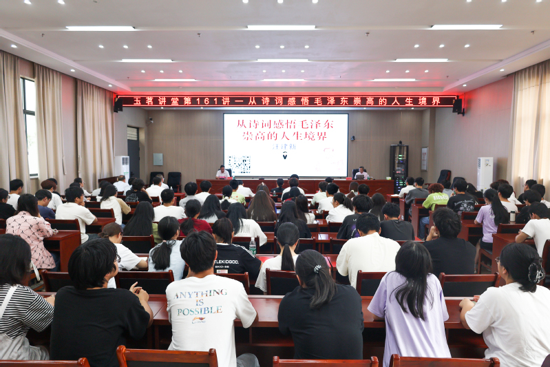 汪教授用通俗易懂的语言、形象生动的讲解,深情阐述了毛泽东诗词里的恢宏气势和高远意境,深刻展现了一代伟人在波澜壮阔时代不平凡的一生。整场讲座气氛热烈,引起了同学们强烈的思想共鸣。