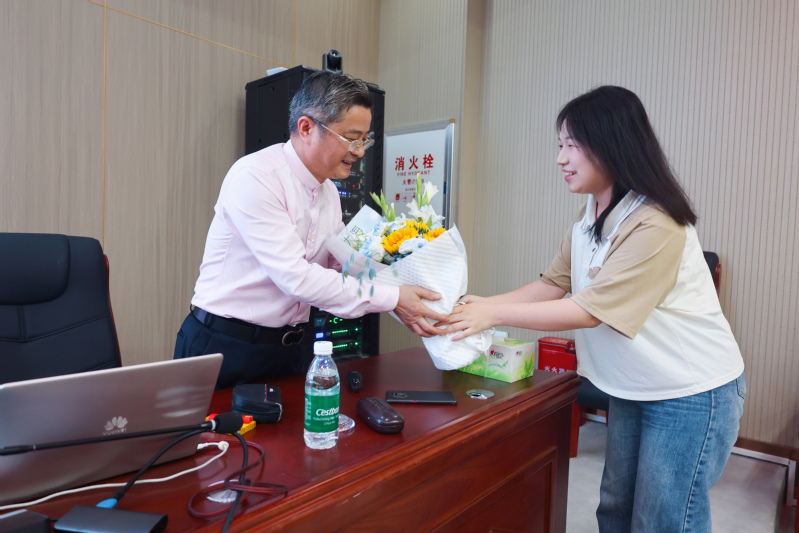 讲座最后,学生代表献花。参加活动的同学纷纷表示,本期“玉茗讲堂”是一场非常生动的诗词思政课,从“孩儿立志出乡关,学不成名誓不还”的宏图大志,到“把酒酹滔滔,心潮逐浪高”斗争到底的决心,再到“今又重阳,但看黄花不用伤”的豁达,最后是“天若有情天亦老,人间正道是沧桑”的豪迈,汪教授的授课深深地打动了在座的每一位同学。