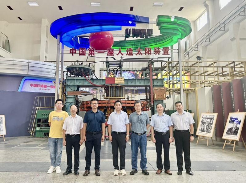 会后,刘云海一行参观了位于校内的中国核聚变博物馆,在工作人员带领和讲解下,详细了解了我国核聚变研究的发展历史及该研究领域取得的瞩目成就,并于“中国第一座人造太阳装置——中国环流器一号”前合影留念。