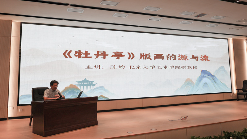 北京大学艺术学院副教授陈均在讲座中介绍,《牡丹亭》是中国明代剧作家汤显祖的代表作之一,属于“临川四梦”之一,其故事内容丰富,人物形象鲜明,深受历代读者和观众的喜爱。《牡丹亭》的版画,作为其艺术表现形式之一,同样承载了丰富的文化价值和历史意义。