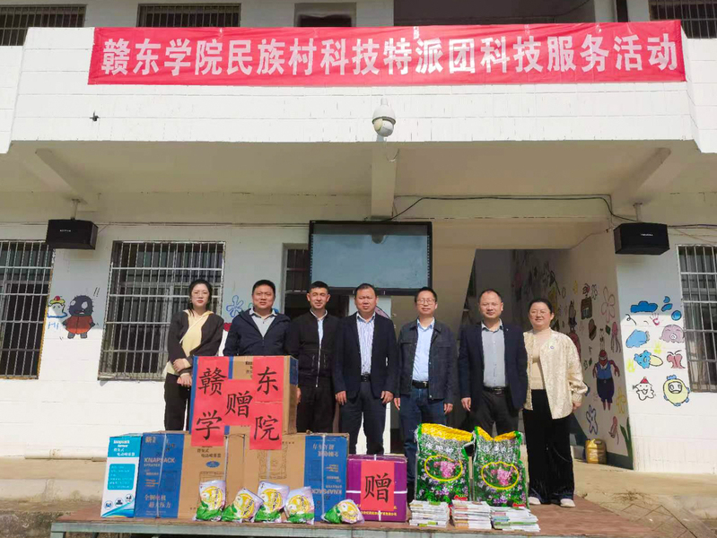 赣东学院在桃源乡王沙塘畲族村举行了“赣东学院民族村农业科技服务站”和“赣东学院社会实践基地”挂牌仪式,充分发挥高校科研人才优势,推动科技、产业和实践育人深度融合,助力乡村振兴。同时,赣东学院民族村科技特派团还向村民们赠送了红花草、油菜花种子、杀虫灯、粘虫板、农业器械及农业技术书籍等物资。