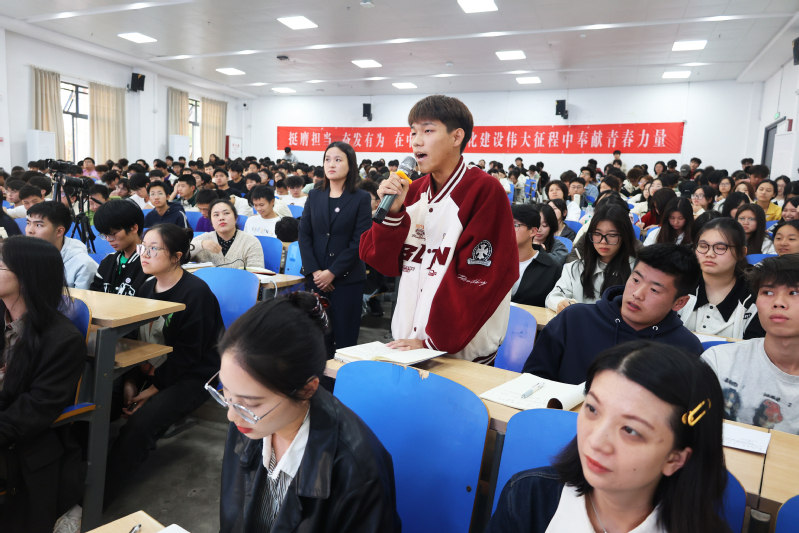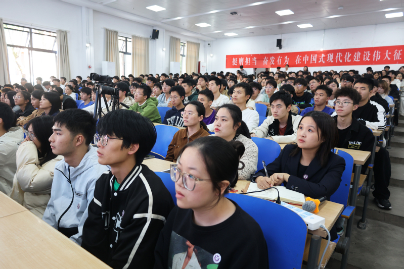 11月7日,校党委书记陈克胜在羊城校区阶梯教室,以“挺膺担当奋发有为 在中国式现代化伟大征程中奉献青春力量”为题讲授思政课。学校师生代表近400人参加。