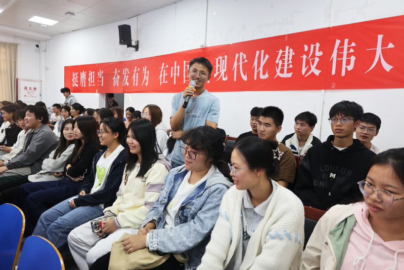 陈克胜指出,党的十八大以来,中国特色社会主义进入新时代。这意味着近代以来久经磨难的中华民族迎来了从站起来、富起来到强起来的伟大飞跃,迎来了实现中华民族伟大复兴的光明前景。新时代的中国发展给同学们提供了无限的机遇,要坚持自信自强,鼓足干事创业的精气神,勇做走在时代前列的奋进者、开拓者、奉献者。