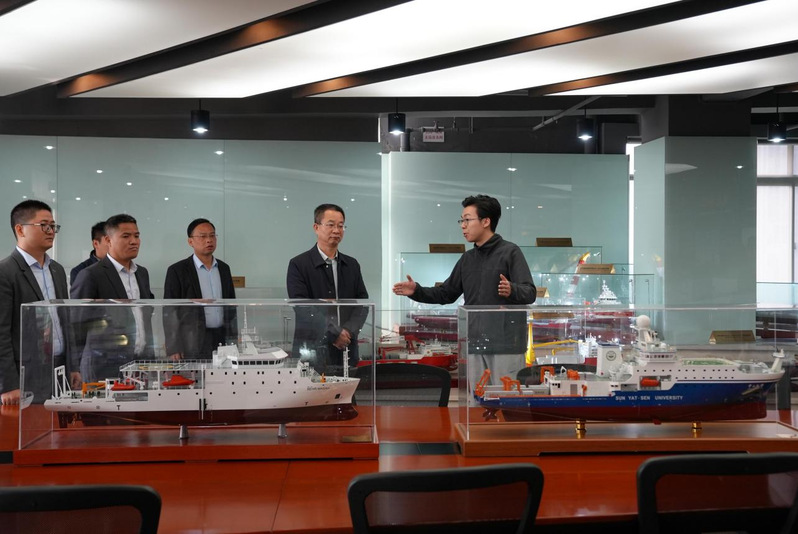 在天海融合防务装备技术股份有限公司,观看了公司发展宣传片、参观了船模室,并与公司监事会主席、党委副书记黄强等人进行了深入的座谈交流。