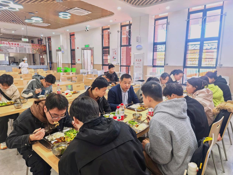 用餐期间,刘云海与同学们亲切交谈,同学们畅所欲言,从挑灯夜战攻克专业难题,到躬身实践积累实操经验,一个个奋斗故事在餐桌上徐徐展开,现场气氛活跃而真挚。