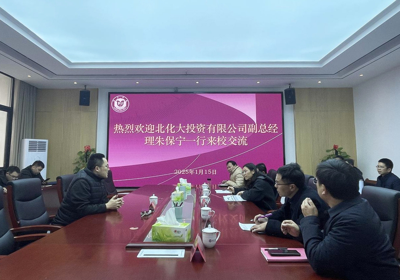 1月15日上午,北京化工大学投资有限公司副总经理朱保宁一行来我校调研交流。抚州市科技局副局长杨斯丹和四级调研员曾爱民,校科技处负责人及科技成果转化专员陪同调研。