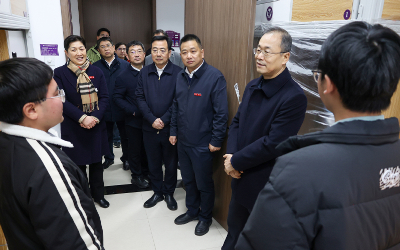 在学生寝室、一站式服务社区、心理中心、食堂等地,孙洪山强调,要强化学生管理与服务,筑牢校园安全防线。整合教务、后勤、就业等功能,实现“线上预约+线下办理”无缝衔接。要开展常态化反诈宣传、防暴及消防安全演练。建立“学校心理工作领导小组-学院二级心理辅导站-班级心理委员-宿舍心理护航员”四级预警机制,精准研判疏导。严控餐饮供应链,落实“明厨亮灶”及第三方抽检公示制度,让学生吃得安全、营养、健康。