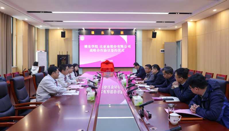 仪式上,刘云海对比亚迪集团一行的到来表示热烈欢迎,并简要介绍了赣东学院的办学历史、学科特色和发展规划。他指出,比亚迪在新能源汽车领域成就卓越,对现场工程师等应用型高技能人才需求大;赣东学院学科专业群与之匹配,双方合作具备互补优势。此次与比亚迪集团开展战略合作,是产业链与教育链深度融合的生动实践,更是服务国家“双碳”战略和江西制造业高质量发展的共同担当,我们坚信在双方的携手努力下,这一合作必将成为校企协同育人的典范,为行业进步和地方经济注入强劲动能。