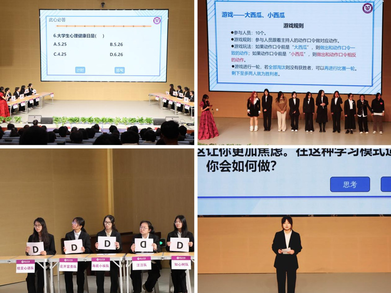 经过百余支队伍初赛的激烈角逐,共十支队伍进入决赛。本次决赛共分为“必答题”“抢答题”“心理情景题”三个环节。将知识竞速、风险博弈与情景模拟深度融合,同学们在竞赛中磨砺心理素质,传递温暖力量。