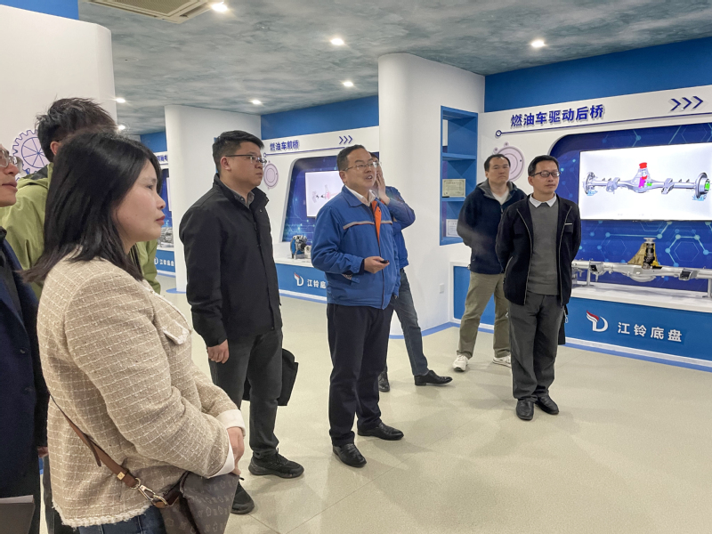调研团队在江西江铃底盘股份有限公司党委书记、董事长胡义华及各部门部长陪同下,参观了企业的展厅和总装车间,深入了解了企业的生产流程、技术设备以及企业文化等情况。
