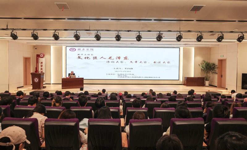 4月20日上午,赣东学院特邀解放军艺术学院原副院长朱向前教授为我校师生作“文化巨人毛泽东——诗词大家、文章大家、书法大家”专题讲座。校党委书记陈克胜,市委宣传部副部长、市社科联主席李锋,江西新华发行集团有限公司抚州市分公司经理廖志华出席。发展规划处处长周林图主持讲座。