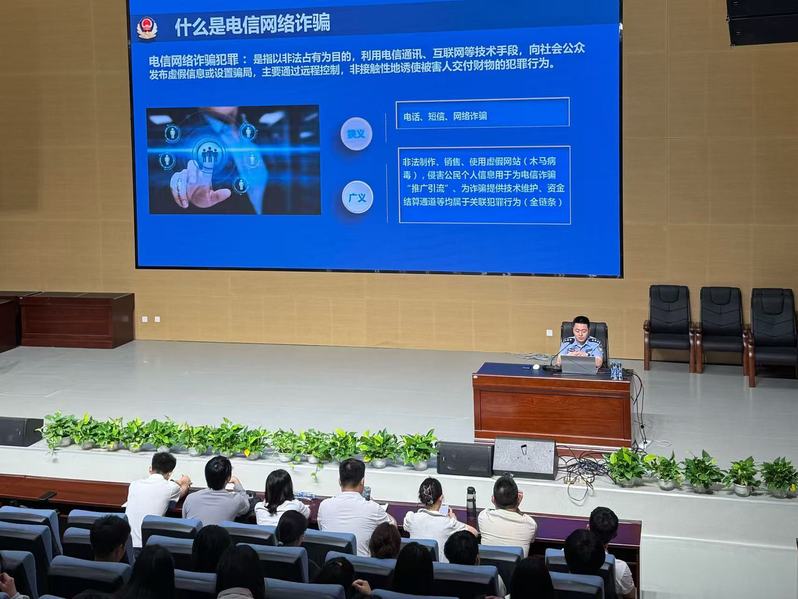 付警官结合近年来发生的典型诈骗案例,详细解析了电信网络诈骗的常见手段和特点,通过生动的案例讲解,让在场的师生深刻认识到诈骗犯罪的多样性和隐蔽性,提醒大家在日常生活中务必保持高度警惕。