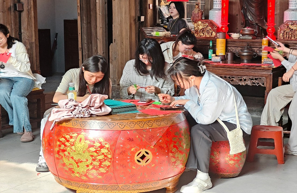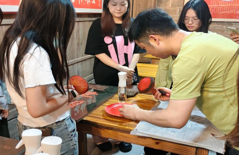 为深入传承中华优秀传统文化,厚植青年学子的文化自信与民族情怀,5月10日,赣东学院人文学院联合文昌里克峻堂匾额博物馆举办了一次别开生面的非遗文化实践活动。23级汉语国际教育专业全体学生在非遗传承人的指导下,沉浸式体验了拓印、剪纸、竹编三项传统技艺,感受中华文化的独特魅力。