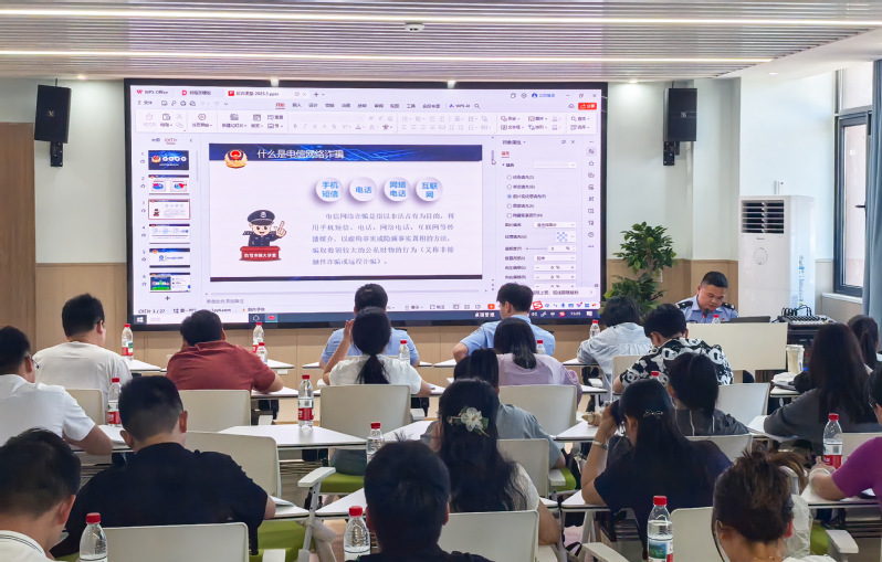 东临分局刑侦大队大队长江柏荣介绍了辖区当前电信网络诈骗形势,详细解读了电信网络诈骗识别公式,从“为什么要大力宣传”“深入了解诈骗套路”“如何防范电信网络诈骗”三个方面,通过复盘一个个身边的真实案例,直观展现诈骗分子的一些话术及手法,破解藏在手机里、网络上的“诈骗谜题”,有效提高了辅导员防骗意识和识骗能力,也助推了反诈宣传教育实效性的提升。