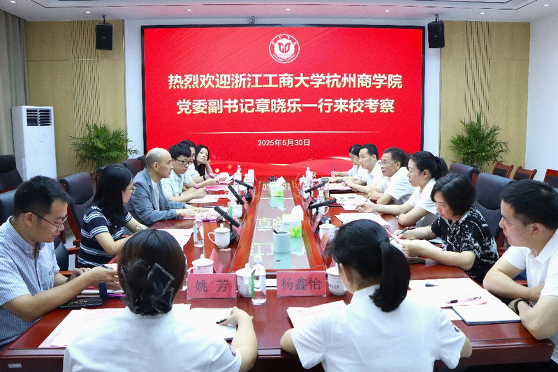 5月30日,浙江工商大学杭州商学院党委副书记章晓乐一行来到赣东学院调研交流。校党委委员、副校长茶金学陪同。