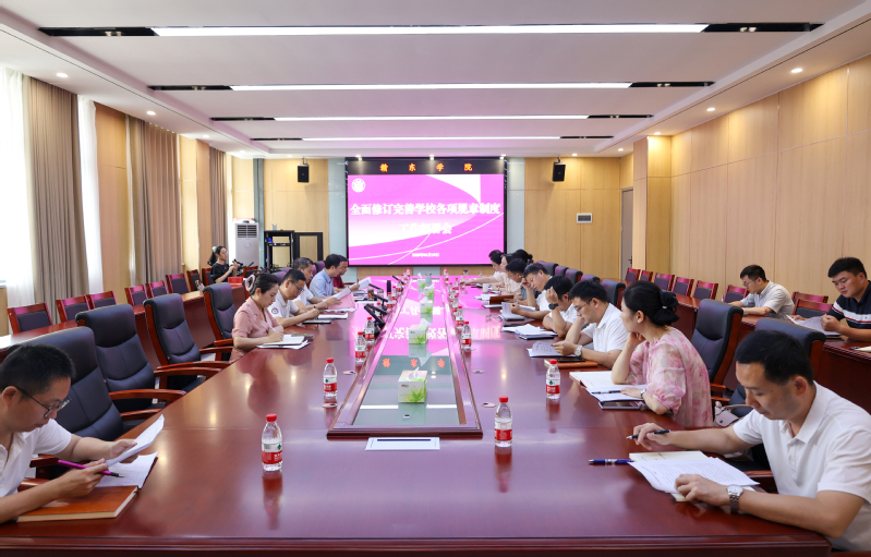 为做好学校各项规章制度的修订和完善工作,提升学校管理规范化、科学化水平,6月19日上午,我校在明德楼421会议室召开全面修订完善学校各项规章制度工作部署会,副校长李勋出席并讲话,各职能部门负责人及相关工作人员参会。