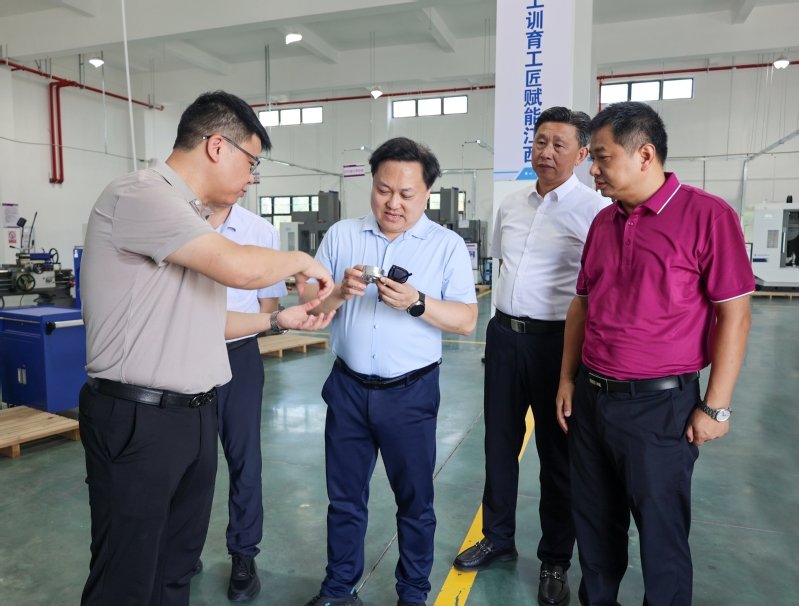 在工程实训中心,陈金桥考察了智能制造实训平台,与教师交流技术应用案例。他指出,工程实训中心是衔接理论与实践的枢纽,需进一步强化校企协同,要主动对接龙头企业、科研院所,构建“产学研用”一体化链条,推动技术研发与市场需求同频共振。