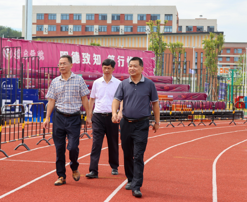 江西省城市足球超级联赛第七轮——抚州队VS新余队将于8月24日19:30在赣东学院体育场开赛,8月23日,校党委副书记、校长刘云海,党委委员、副校长茶金学来到体育场,实地检查场地设施及筹备情况,为确保比赛顺利举行现场指导部署。