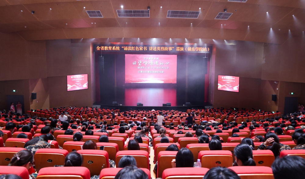 百年征程波澜壮阔,信仰之光穿越时空。9月21日下午,由江西省委教育工委、省教育厅主办的全省教育系统“回望峥嵘读初心——诵读红色家书 讲述英烈故事”巡演在赣东学院大学生活动中心千人大礼堂举行。来自省内多所兄弟院校的领导嘉宾、师生代表近千人观看演出,接受了一堂生动而深刻的“沉浸式”思政大课。