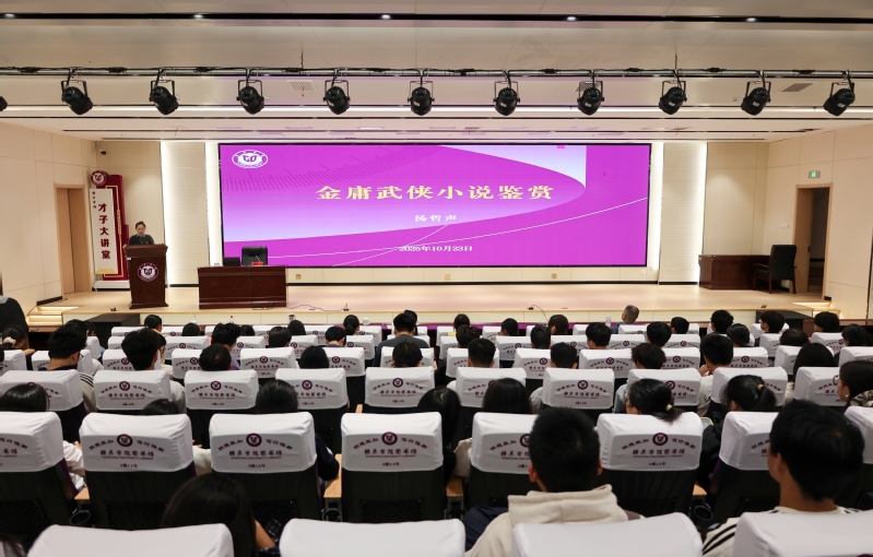 10月23日,赣东学院“才子大讲堂”第二十八期专题讲座在校图书馆一楼报告厅举行。苏州大学文学院汤哲声教授应邀为我校师生作了题为“金庸武侠小说赏析”的专题报告。汤哲声教授是中国武侠文学研究会副会长、苏州大学通俗文学与大众文化研究中心主任,在通俗文学研究领域有着深厚造诣。他主持国家社科重大项目“百年中国通俗文学价值评估”,其主编的著作曾获江苏省哲学社会科学优秀成果一等奖。