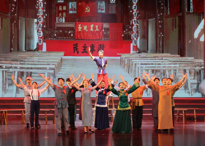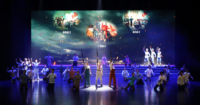 《人民共和国从这里走来》是由赣南师范大学创作并演出的教育部“高校原创文化精品推广行动计划”项目。剧目聚焦中国共产党从“定都瑞金”到“战略转移”的辉煌革命历程,综合运用音乐、舞蹈、戏剧等艺术形式,并融入赣南采茶戏、客家灯彩等非物质文化遗产元素,结合现代声光电舞台技术,生动再现了苏区时期中国共产党建立红色政权、一心为民的峥嵘岁月,深刻诠释了坚定信念、求真务实、无私奉献的苏区精神。
