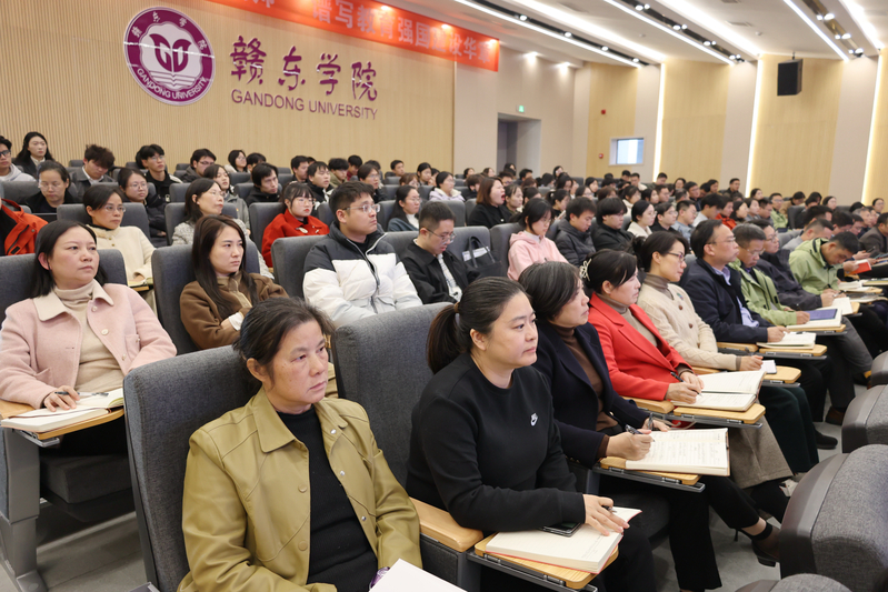 会议第一阶段,抚州市委宣讲团成员、市委政研室主任、改革办副主任戴新平作学习贯彻党的二十届四中全会精神专题宣讲报告。校领导班子成员,副科级及以上干部,辅导员、思政课教师代表,学生代表200余人参加。戴新平以《深学细悟党的二十届四中全会精神 勇担时代使命 书写青春华章》为题,结合抚州市经济社会发展新形势新要求和我校实际,对全会精神作了系统阐述和深入解读。