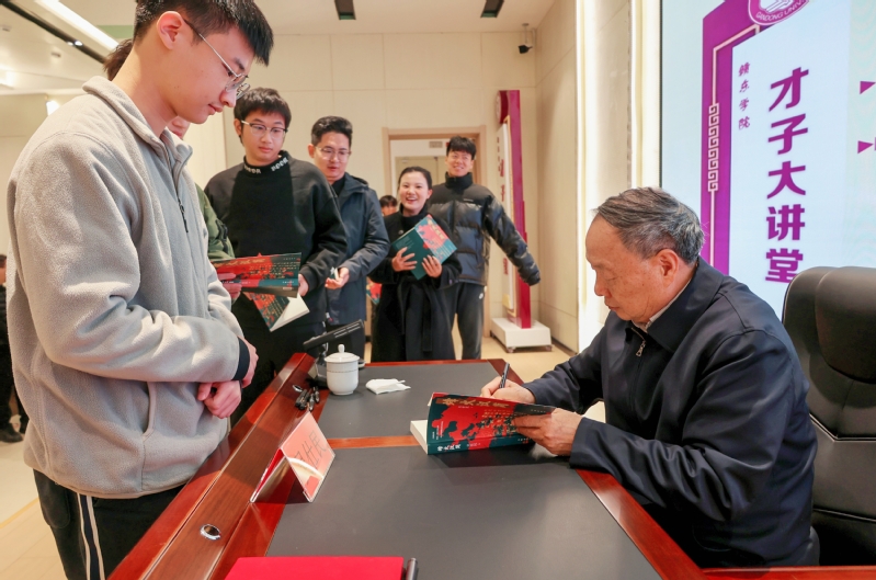 吴仕民将亲笔签名的《烽火汉简》新书赠予赣东学院图书馆,以此丰富馆藏,惠及更多学子。同学们手持新书,在与作者近距离交流中感受文学的温度与魅力。